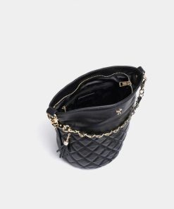 Túi bucket màu đen Cindy tuy có dáng hình cái xô cứng cáp nhưng xúc cảm chạm vào lại mịn màng, không gian chứa đồ rộng rãi.